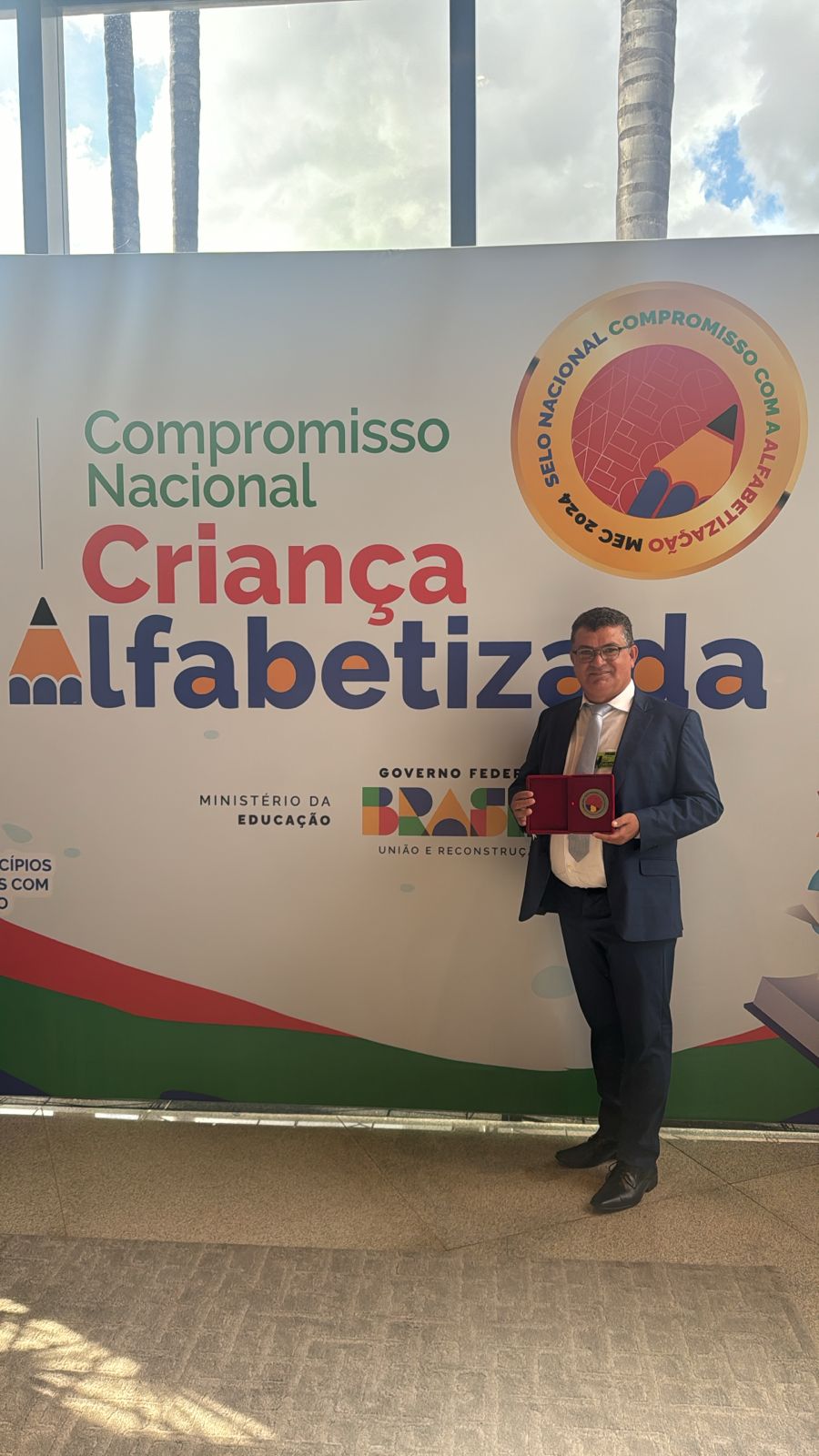 São João do Rio do Peixe brilha em Brasília: Prefeito Luiz Claudino recebe Prêmio Selo Nacional Compromisso com a Alfabetização