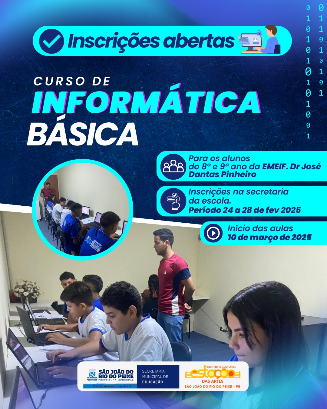 Inscrições Abertas para Curso de Informática Básica para Alunos da Rede Municipal de São João do Rio do Peixe
