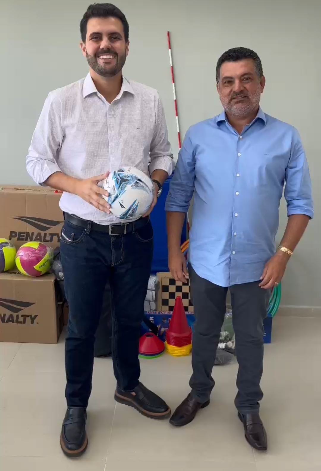 Prefeito de São João do Rio do Peixe e secretário de Educação anunciam entrega de kits esportivos