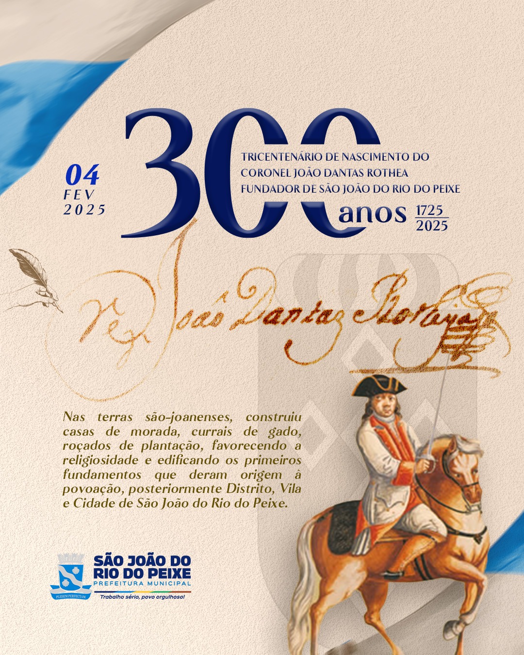 São João do Rio do Peixe celebra o Tricentenário de João Dantas Rothea, seu fundador