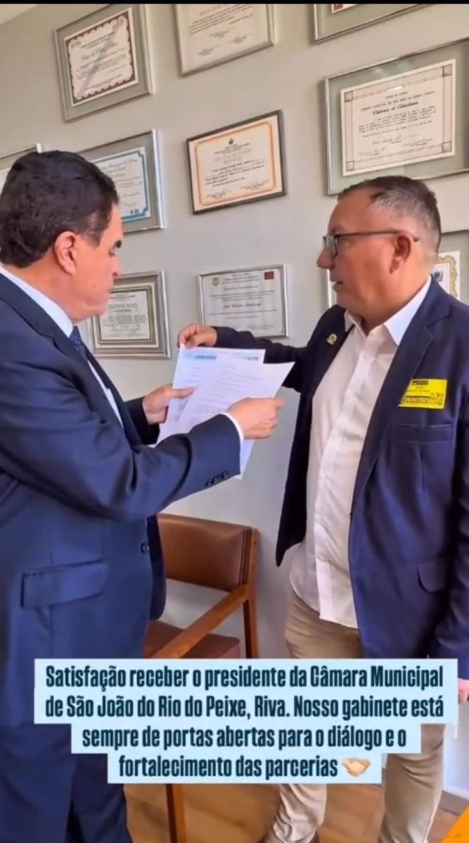O presidente da Câmara Municipal de São João do Rio do Peixe, vereador Riva, esteve em Brasília onde se reuniu com o deputado federal Wilson Santiago para tratar de demandas prioritárias do município.